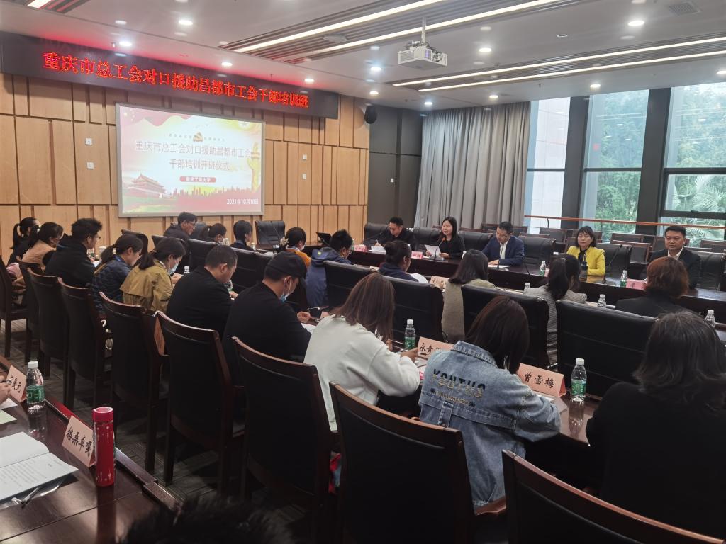 10月18日上午,重庆市总工会对口援助昌都市工会干部培训班在重庆工商大学图书馆5会议室顺利开班。重庆市总工会党组成员、副主席刘理志,昌都市总工会党组成员、四级调研员黄莉,重庆市总工会组织部副部长廖云出席了开班仪式,会议由重庆市总工会职工服务中心主任刘中国主持。继续教育学院院长杜朝辉开班致辞。