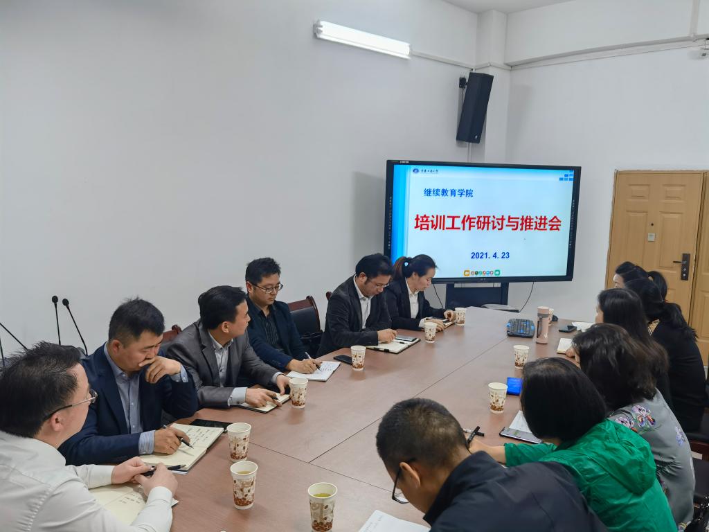 4月23日上午,继续教育学院召集了干部培训项目相关负责人会议,共同研讨、会商业务发展与工作推进,会议在学院90327会议室进行,学院培训中心全体人员参加了会议,会议由杜朝辉院长主持。
