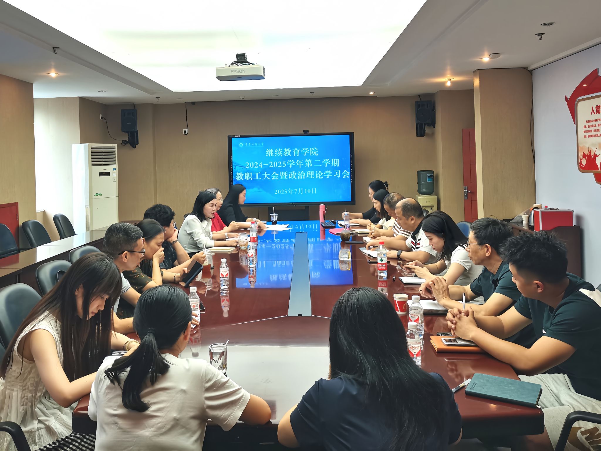 7月10日,继续教育学院组织召开教职工大会暨7月政治理论学习会,会议由学院院长王燕主持,全体教职工参加了会议。