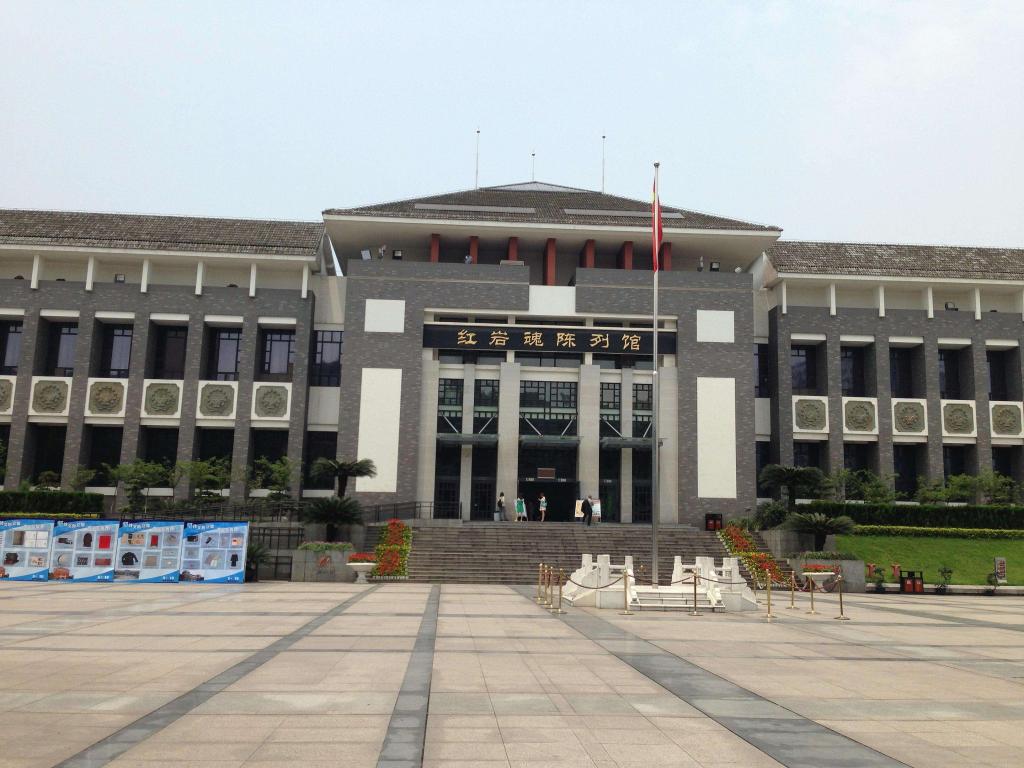 白公馆后面是松林坡,著名的抗日将领杨虎城将军在此遇难。参观者继续前行,可望见那臭名昭著的“渣滓洞”监狱。这里曾关押过1947年“六一”大逮捕、小民革武装起义、1948年《挺进报》事件、上下川东武装起义中被捕的江竹筠(江姐)、何雪松、胡其芬、蔡梦慰等革命者,最多时关押300多人。狱中空气恶浊,饭食粗劣。革命先烈在酷刑镣铐的摧残下,在非人生活的折磨下,进行着顽强的抗争。大规模的集体斗争有狱中追悼会、春节联欢会、狱中学习等,极大地鼓舞了革命者的斗争精神,成为监狱史上的奇迹。1949年11月27日,重庆解放前夕,丧心病狂的国民党军统特务对正在期待黎明到来的革命者进行了疯狂的大屠杀,革命烈士用热血谱写了一曲最悲壮的革命之歌。红岩英烈,这是具有史诗般时代特点的英雄称号。他们在中国共产党的领导下,怀着救国救民的伟大志向,为了一个共同的革命目标,在敌人疯狂的屠刀下,表现出了革命者宁死不屈、视死如归的高尚情怀。临刑时大义凛然,从容就义的英雄气概,给共产党员和人民树立了世代楷模。他们的鲜血迎来了新中国的诞生,他们以宝贵生命谱写的英雄诗篇,将永远载入中国的革命史册。他们为革命事业的献身精神,永远鞭策和鼓舞着我们前进!